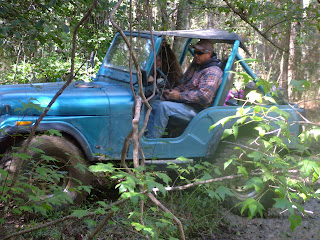 Dale, Janice, Sarah, Mark and myself went to goose camping this weekend. Friday, we decided to do some off roading in the Jeeps, while we were waiting on Duck and Ruby to arrive. We got to a tree down and the off road started.